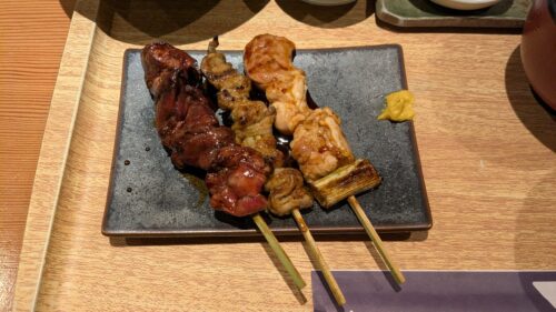 焼き鳥もタレと塩から選べ、タレは甘めでレバーが入っており