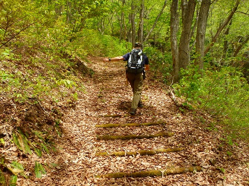 ここで小休止した後、再び渡部氏の出番である。しばらく先遣隊としてルートを探したが、50年以上も利用されない峠道を探索することが難しく、時間も午後3時近くになることから、中止して引き返へすことした。
