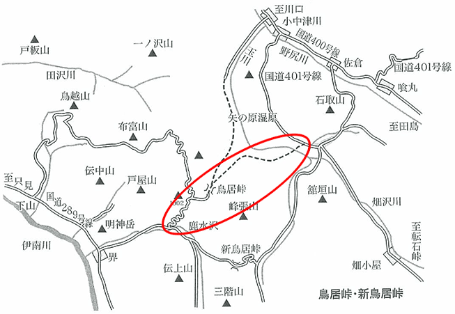 峠越えの踏査にあたり、事前に車を下山地点(昭和村)に置いて、新鳥居峠を迂回して出発地点(南会津町)へ向かった。登山口は標高約800mに位置する高清水高原である。その入り口まで車で行けることから鳥居峠には容易に到達でき、後は下りにて昭和村へ到達できるものと想定していた。