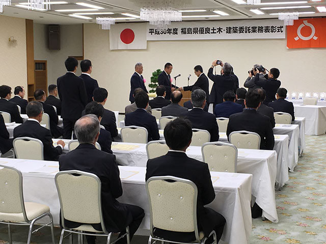 平成30年度福島県優良土木・建築委託業務表彰式 2025年3月31日2018年8月30日 去る8月29日に「平成30年度 福島県優良土木・建築委託業務表彰式」が行われました。 弊社は測量業務において賞をいただくことができました。 D.G