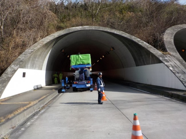 トンネル点検の現場です。雪がなくていいですねー、でも、交通誘導員さんはとても寒いと言っておりました。