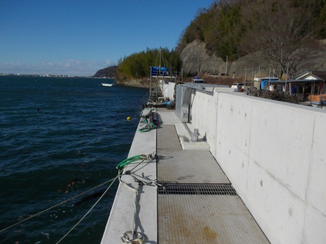 防潮堤でのボーリング作業風景