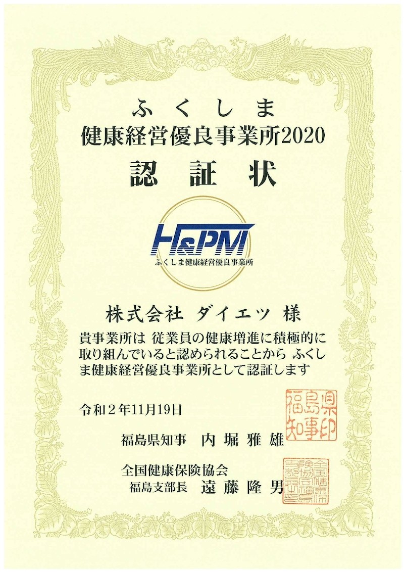 ふくしま健康経営優良事業所2020認証
